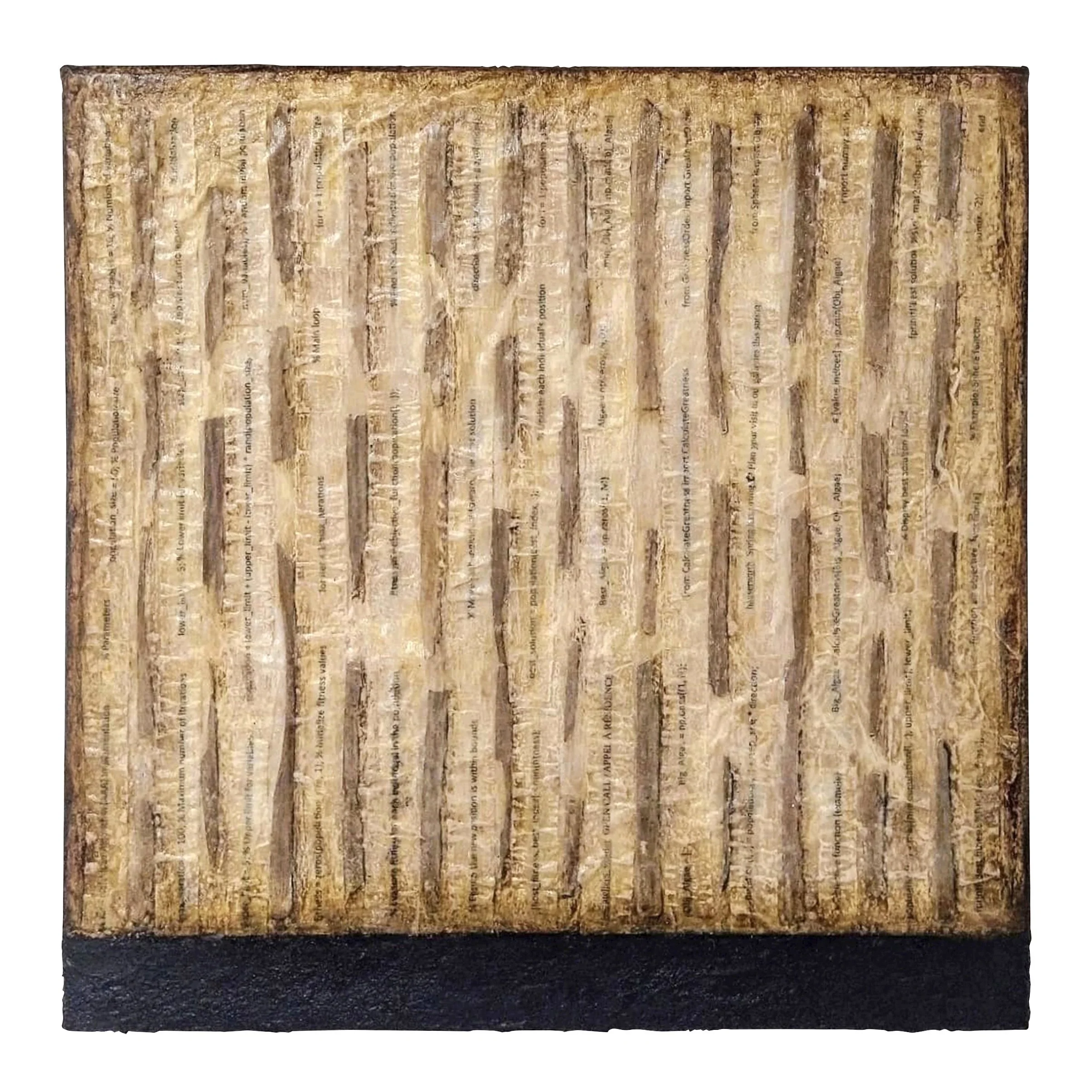 Mixed media, collage, natural algae modified, and tar on canvas.
